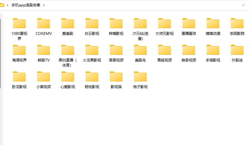 本合集包含APP:1080看视界/COKEMV/爱美剧/白云影视/哔嘀影视/次元站/大师兄影视/蛋播星球/嘀嘀动漫/饭团影院/海阔视界/韩剧TV/黑白直播/火龙果影视/简易视频/美剧鸟/青蛙视频/曲奇视频/手指影视/外剧迷/卧龙影视/小草视频/心爱影视/杨桃影视/影视猫/柚子影视等26款手机端追剧APP。