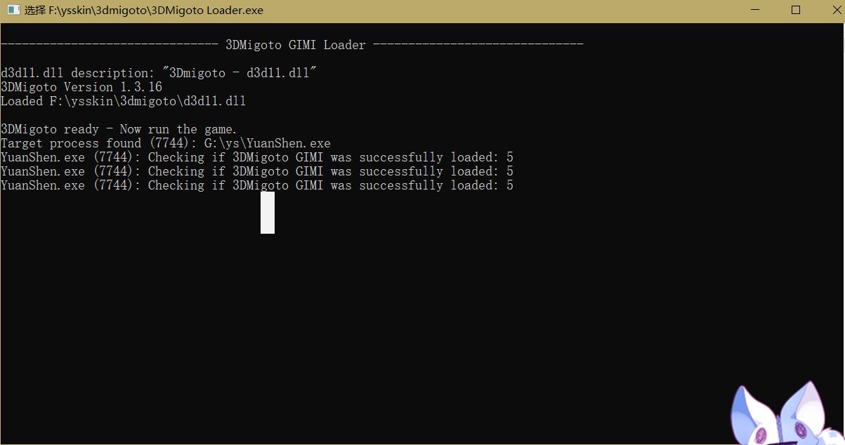 为什么打开游戏后3DMigoto显示几条 Checking if 3DMigoto GIMI was successfully loaded: 5