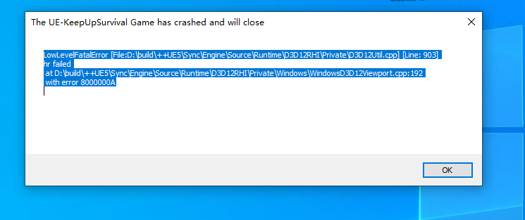 LowLevelFatalError [File:D:\build\++UE5\Sync\Engine\Source\Runtime\D3D12RHI\Private\D3D12Util.cpp] [Line: 903]